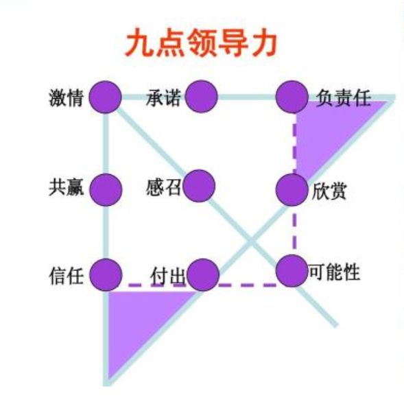 人生起点是激情,有了激情,做出承诺,采取负责任的态度欣赏身边的一切,心甘情愿的付出,信任他人,开创共赢的局面。这些过程会增添更大的激情,从而感召到更多的人参与,创造更大的可能性。因此,九点领导力是人生成功的重要素质。其主要内容包括激情、承诺、负责任、共赢、感召、欣赏、信任、付出、可能性九个方面。